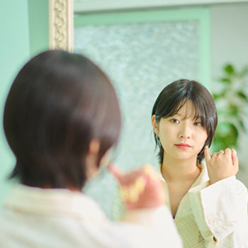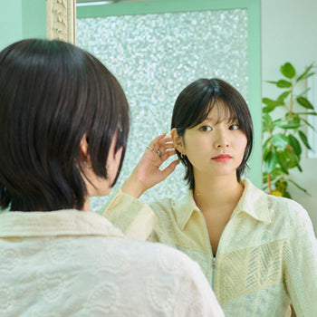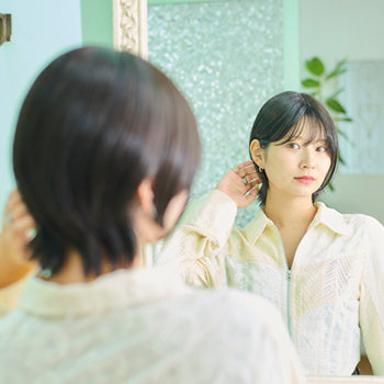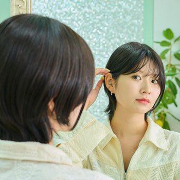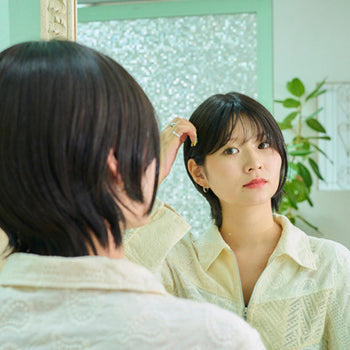 ①前後を確認:シートの丸みが小さい方が「前」、大きい方が「後ろ」 ②乗せる:分け目に合わせて装着位置を決める ③貼る:アタッチメント部分を指でしっかり押す ④なじませる:コームやブラシで毛先をとかし、地毛とブレンド ⑤完成! コテ巻きやヘアアレンジもOK(耐熱180℃) ※外す際は、地毛に負担をかけないよう、垂直にゆっくり取り外してください。